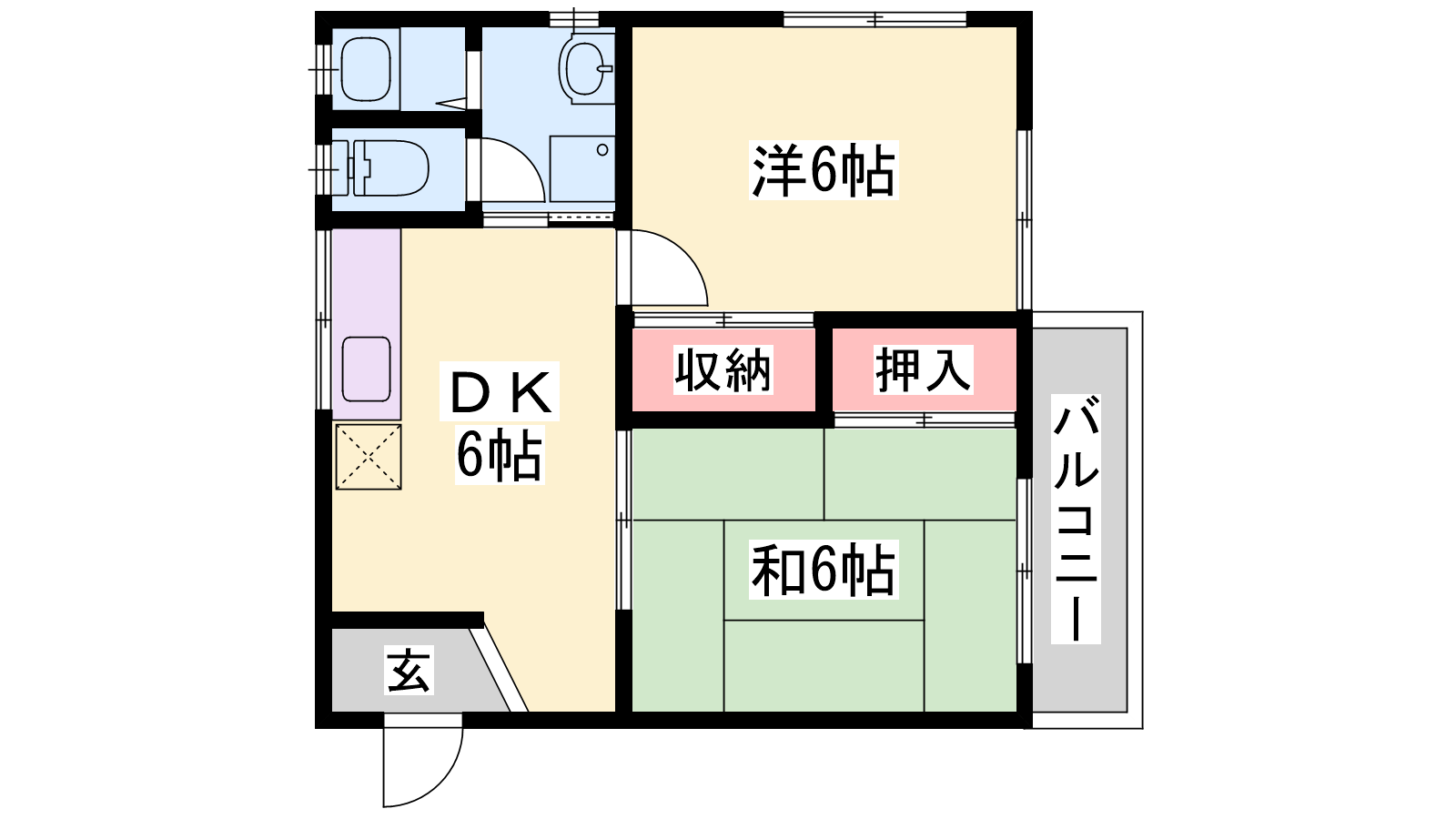 - DK5帖、洋室6帖、和室6帖