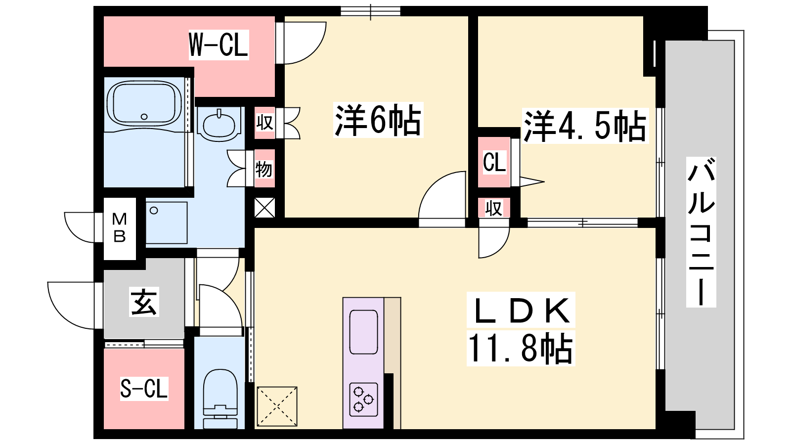 - LDK11.8帖、洋室6帖、洋室4.5帖