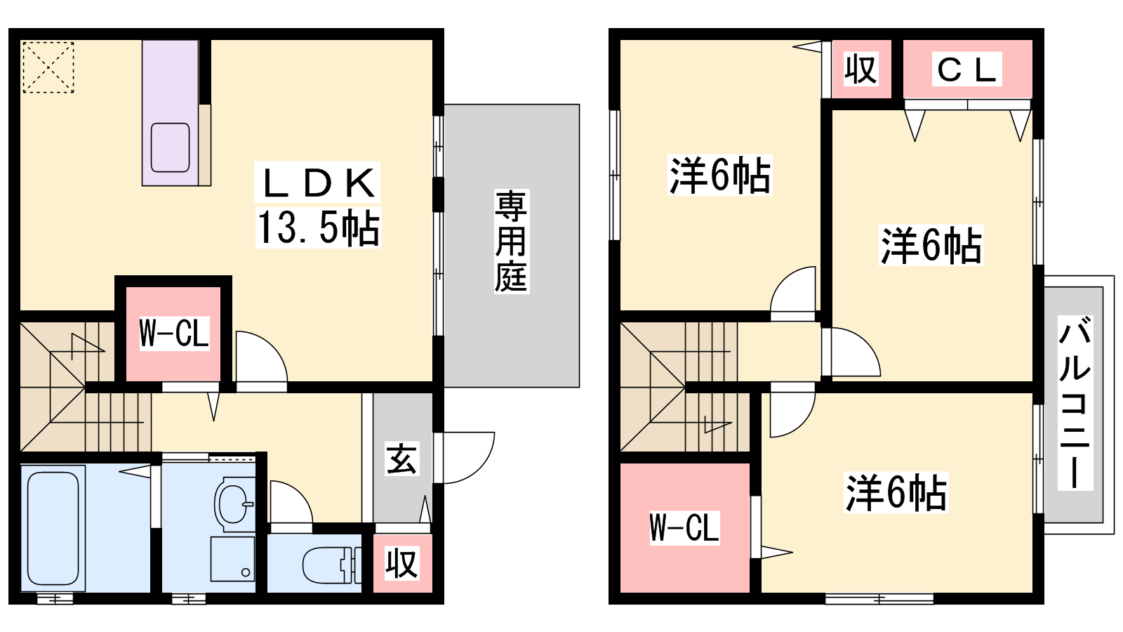 - LDK13.5帖、洋室6帖、洋室6帖、洋室6帖