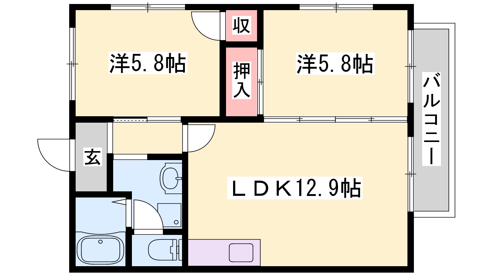 - LDK12.9帖、洋室5.8帖、洋室5.8帖