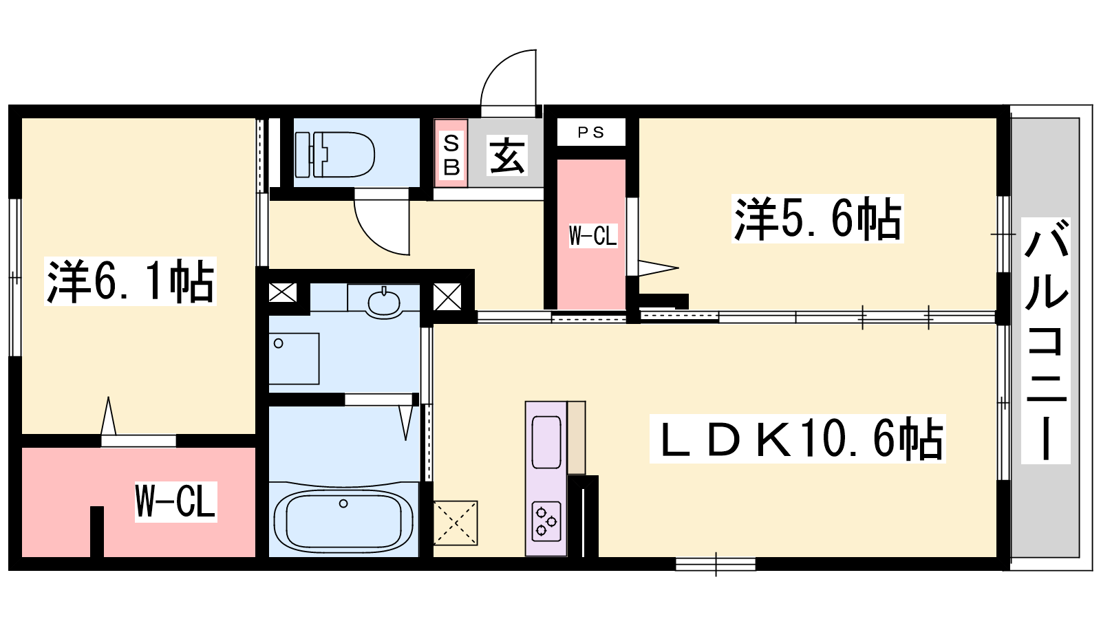 - LDK10.6帖、洋室6.1帖、洋室5.6帖