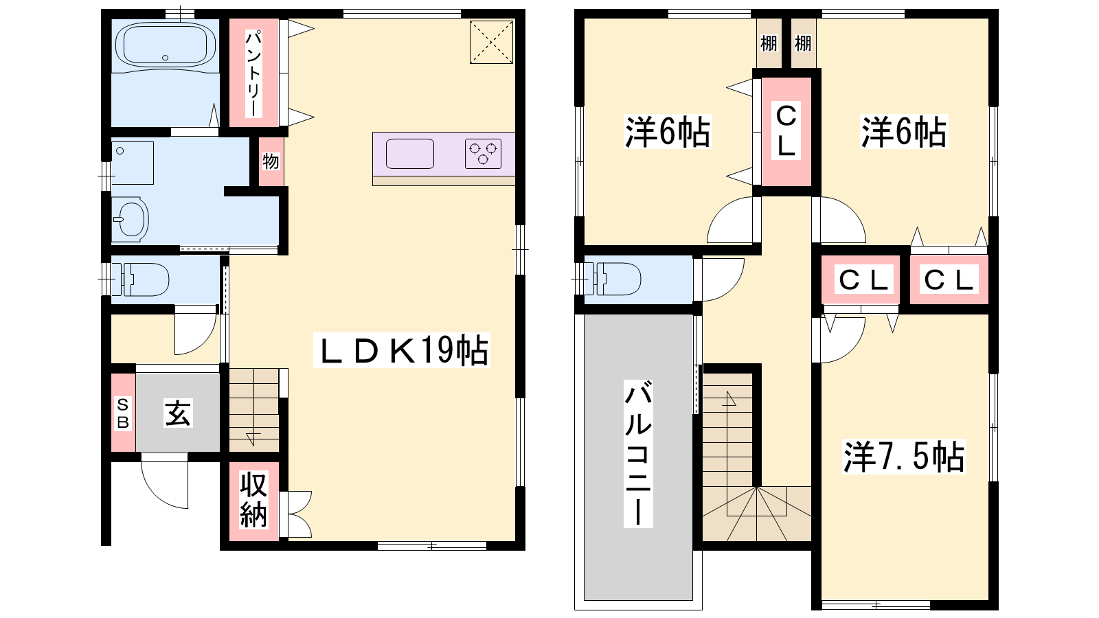 - LDK19帖、洋室7.5帖、洋室6帖、洋室6帖