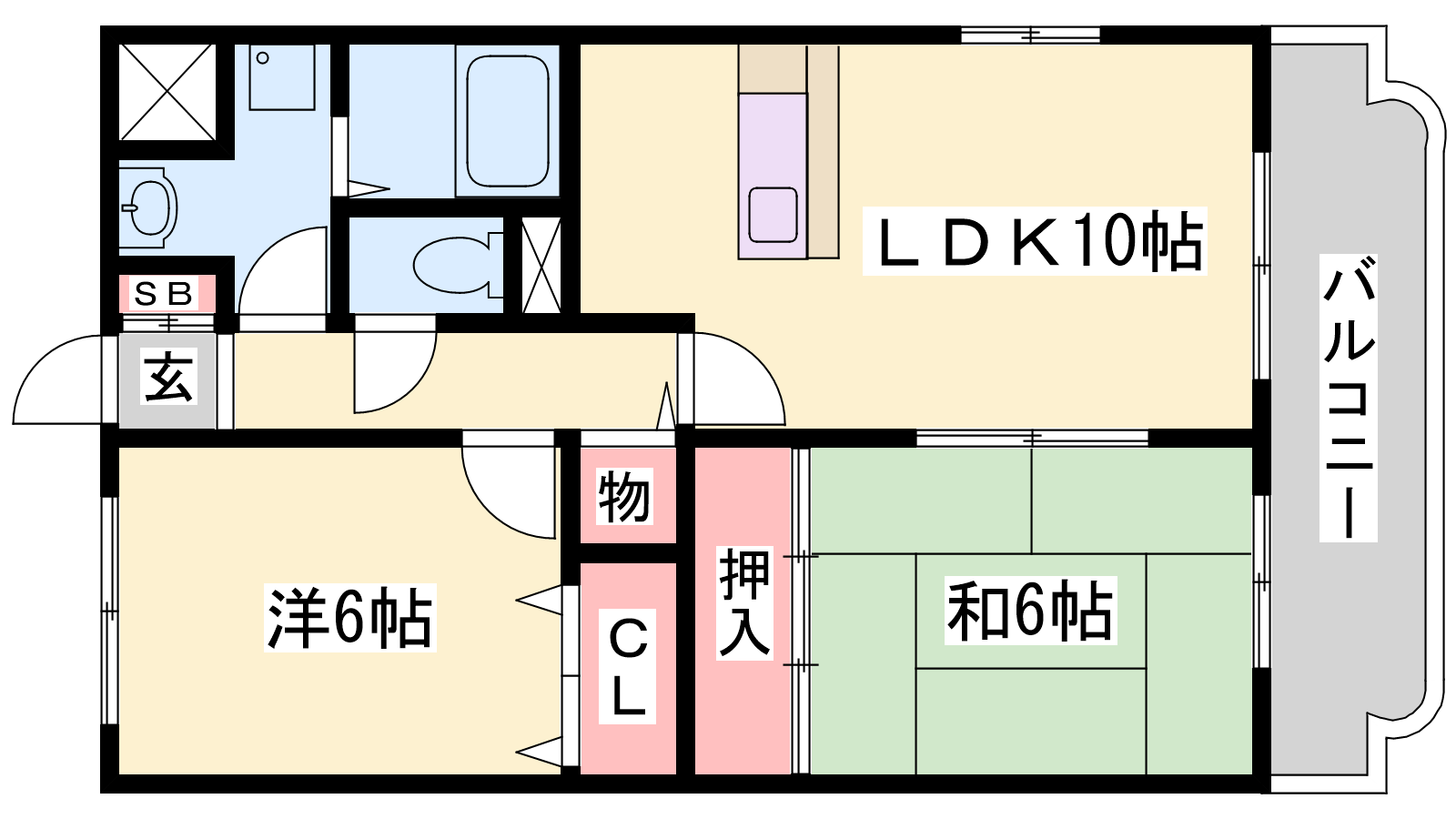 - LDK10帖、洋室6帖、和室6帖