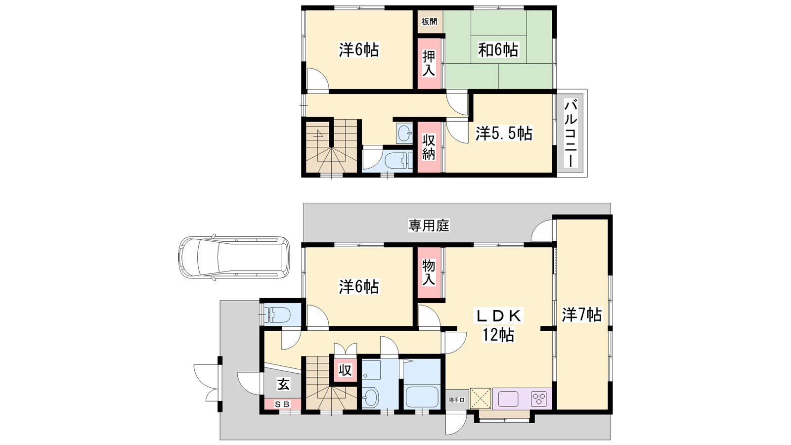 - LDK12帖、洋室7帖、洋室6帖、洋室6帖、洋室5.5帖、和室7帖