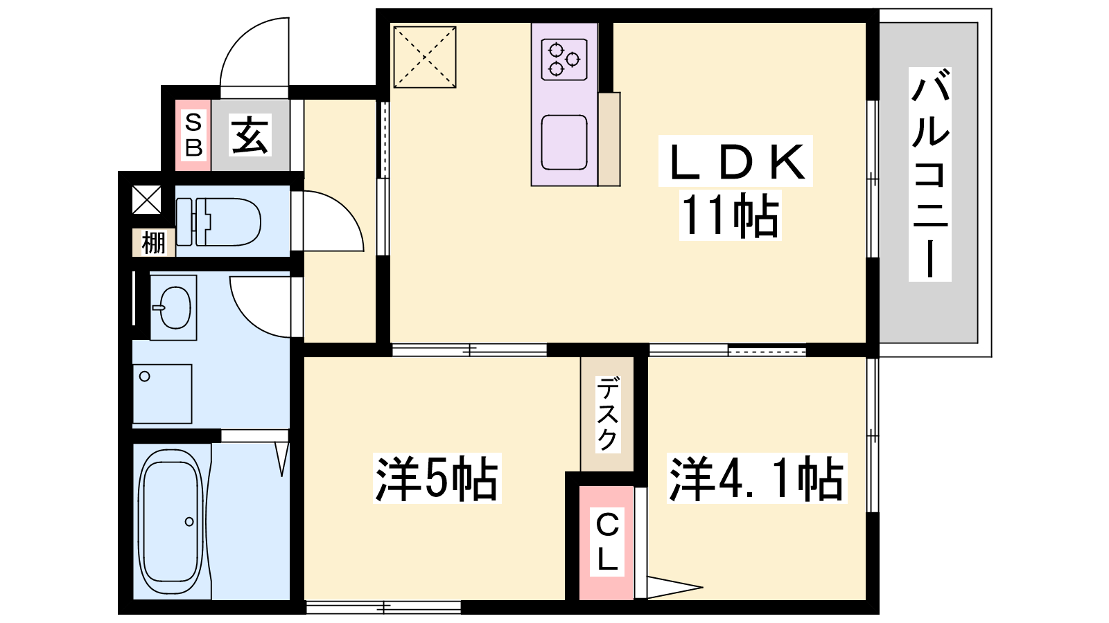 - LDK11帖、洋室5帖、洋室4.1帖