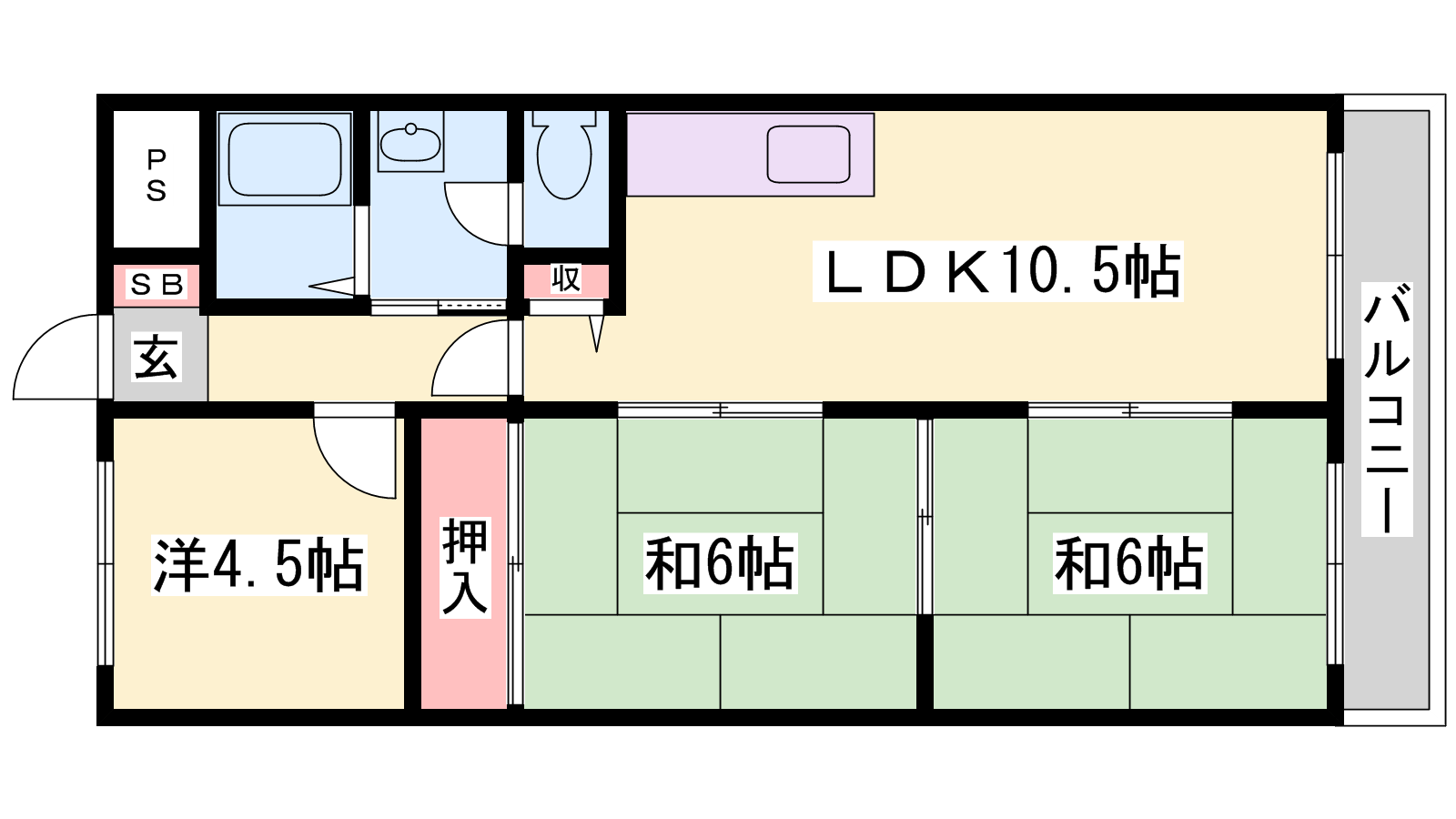- LDK10.5帖、洋室4.5帖、和室6帖、和室6帖