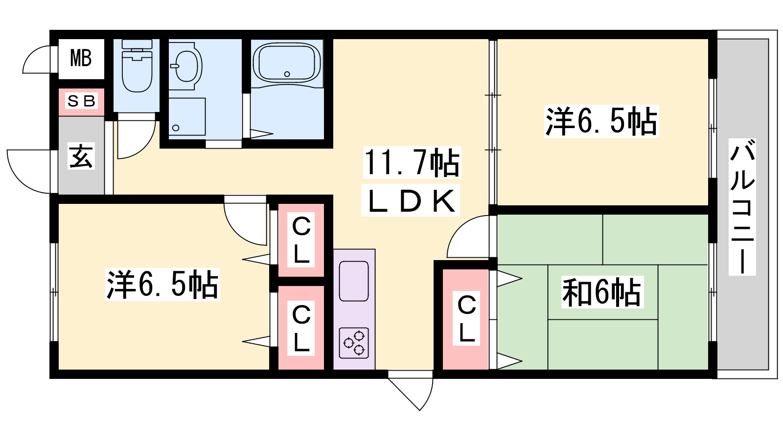 - LDK11.7帖、洋室6.5帖、洋室6.5帖、洋室6帖