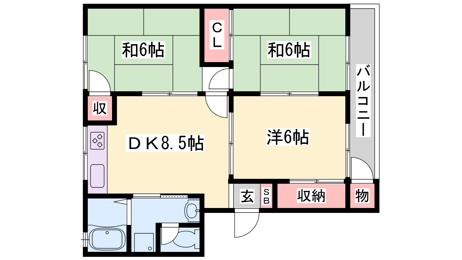 - DK8.5帖、洋室6帖、和室6帖、和室6帖