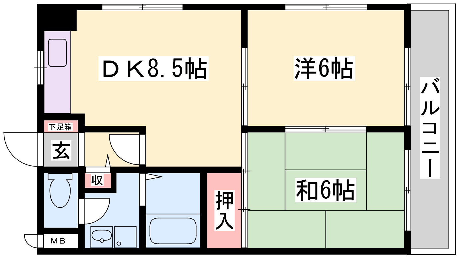 - DK8.5帖、和室6帖、洋室6帖