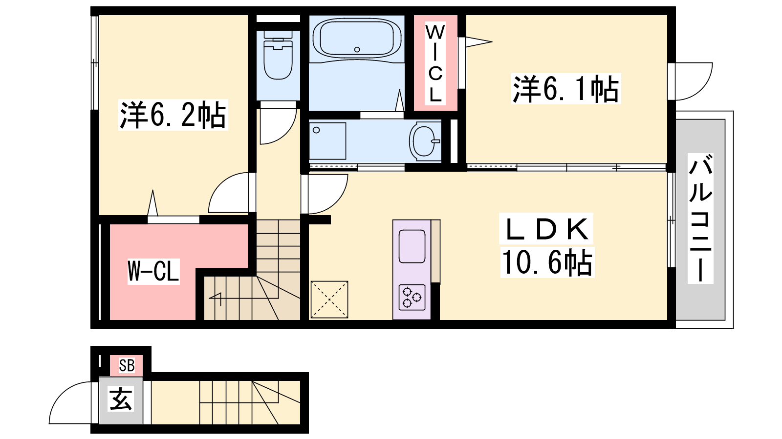 - LDK10.6帖、洋室6.1帖、洋室6.2帖