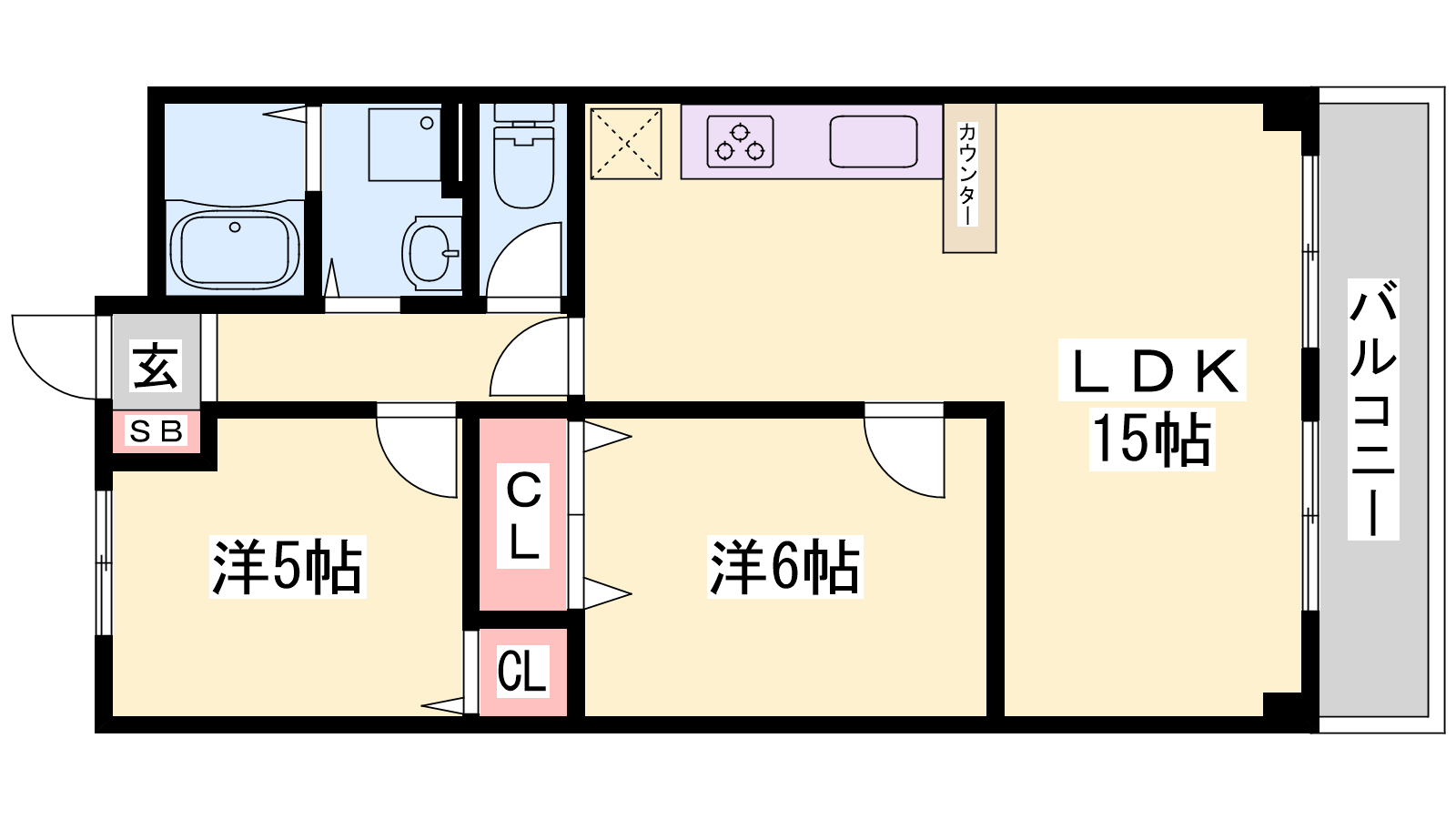- LDK15帖、洋室6帖、洋室5帖