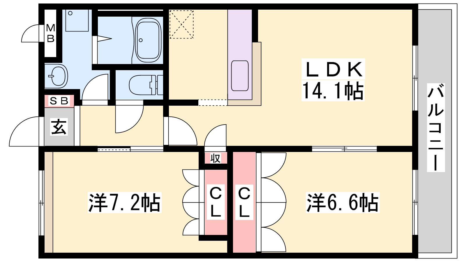 - LDK14.1帖、洋室7.2帖、洋室6.6帖