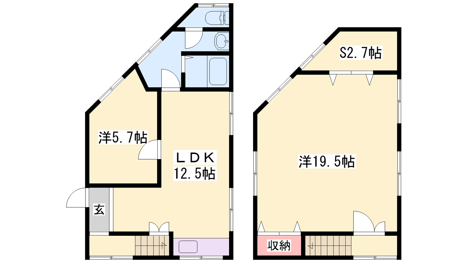 - LDK12.5帖、洋室19.5帖、洋室5.7帖
