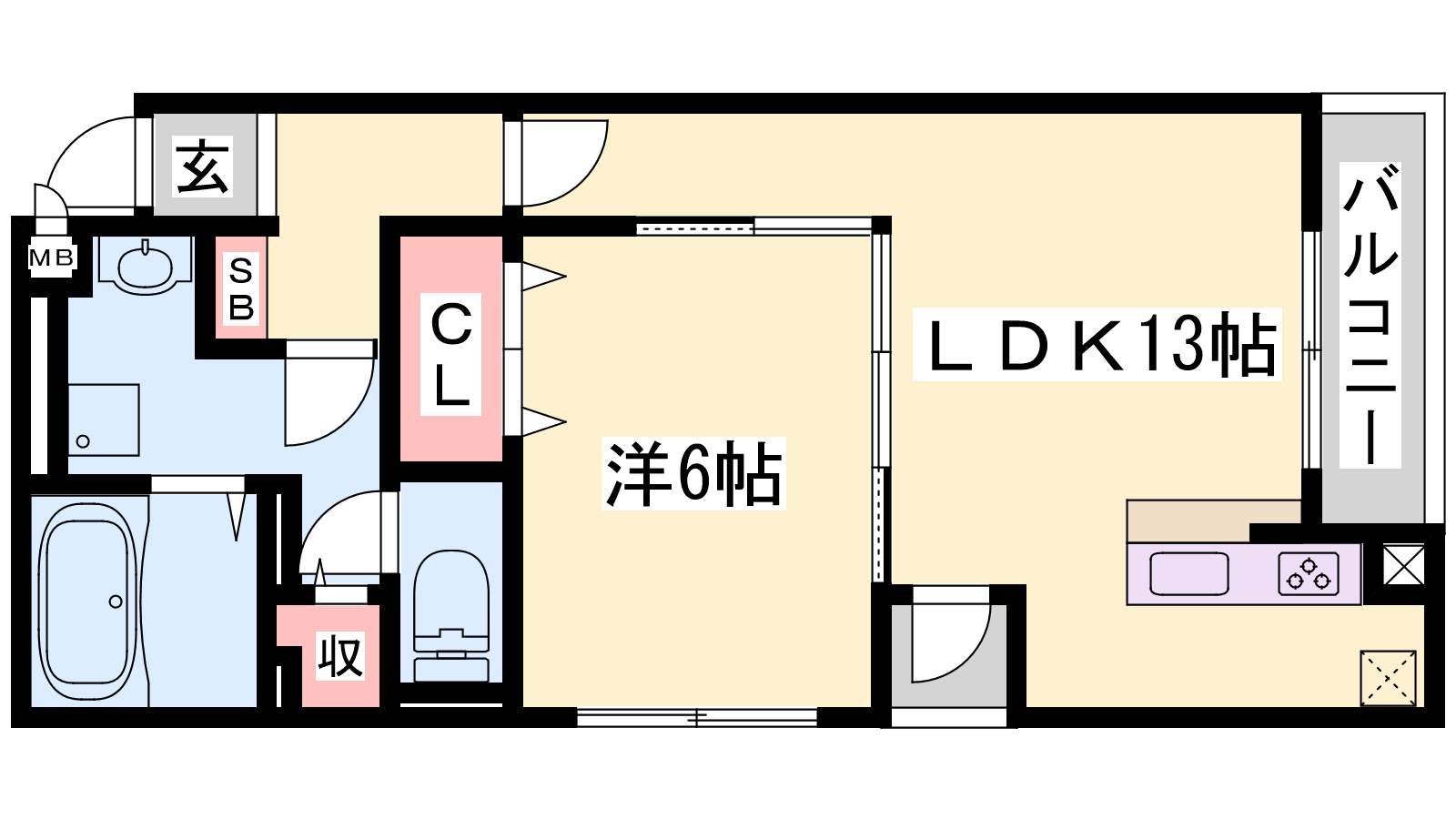 - LDK13帖、洋室6帖