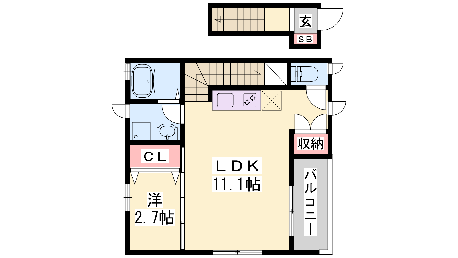 - LDK11.1帖、洋室2.7帖