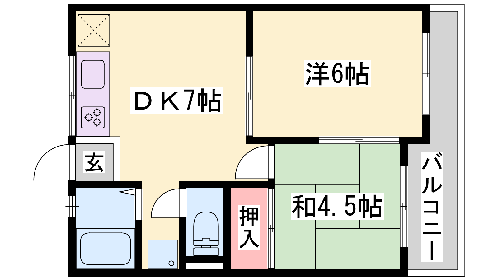 - DK7帖、洋室6帖、和室4.5帖