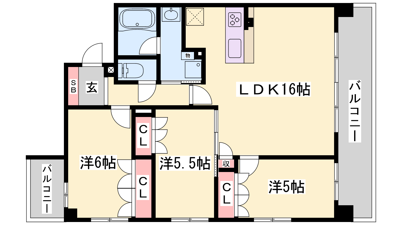 - LDK16帖、洋室6帖、洋室5.5帖、洋室5帖