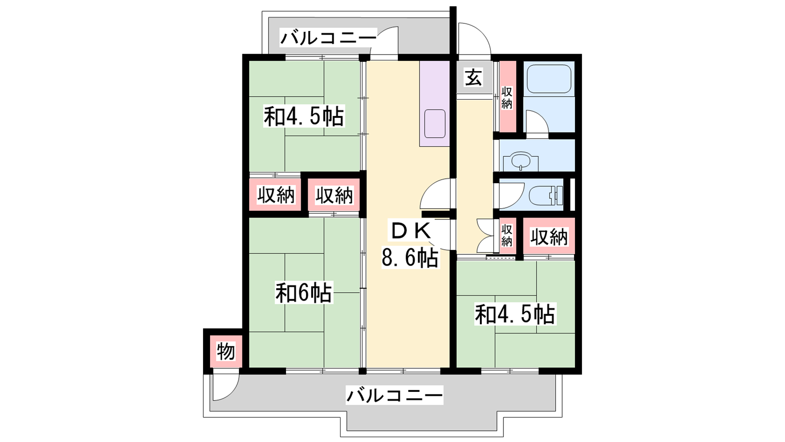 - DK8.6帖、和室6帖、和室4.5帖、和室4.5帖