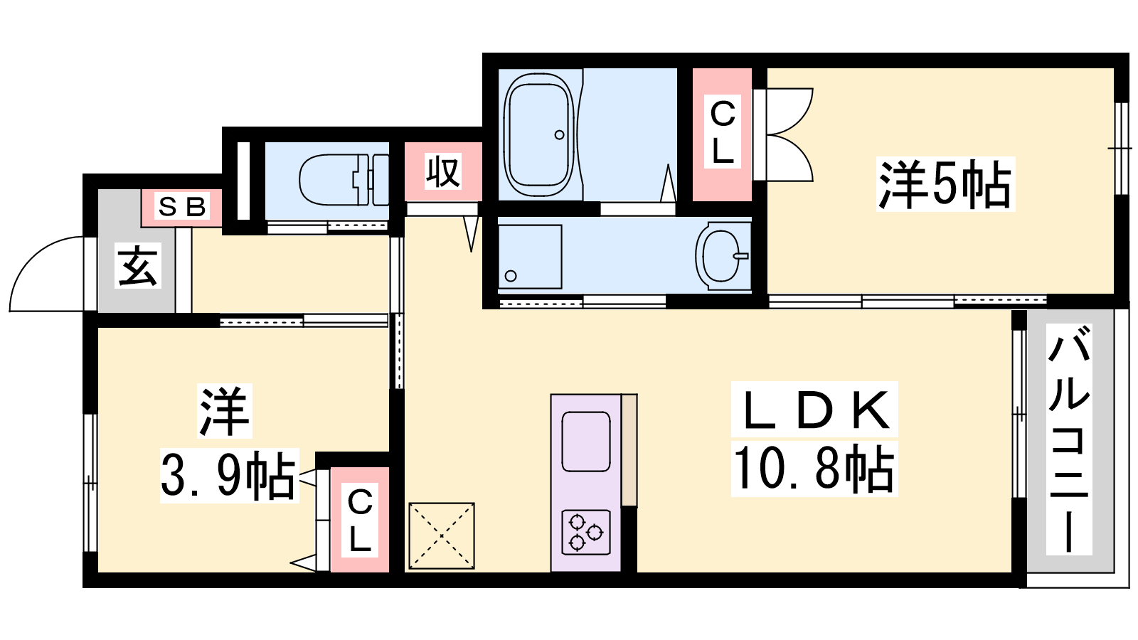 - LDK10.8帖、洋室5帖、洋室3.9帖