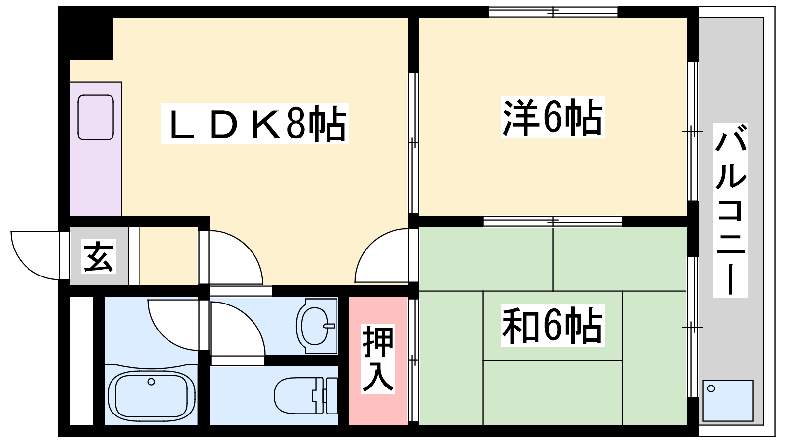 - DK8帖、洋室6帖、和室6帖