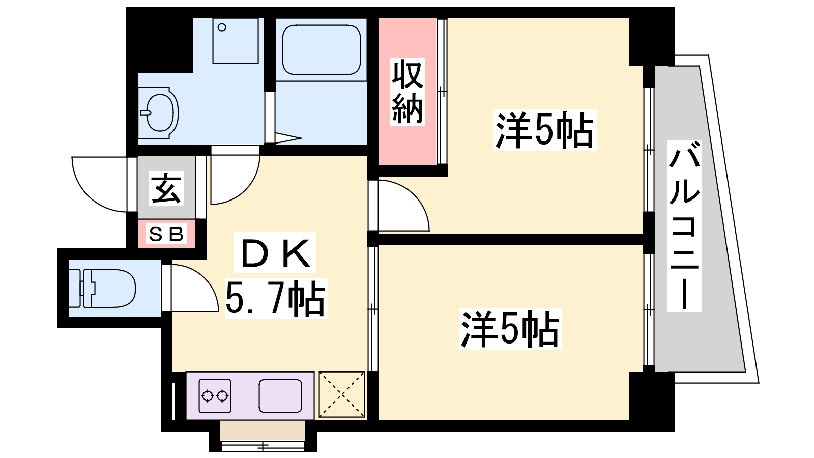 - DK5.5帖、洋室5帖、洋室5帖
