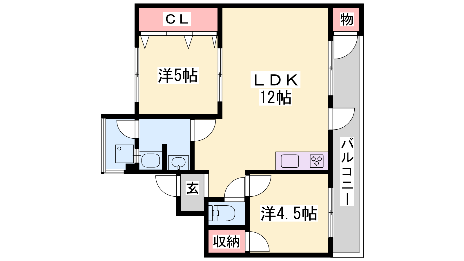 - LDK12帖、洋室5帖、洋室4.5帖