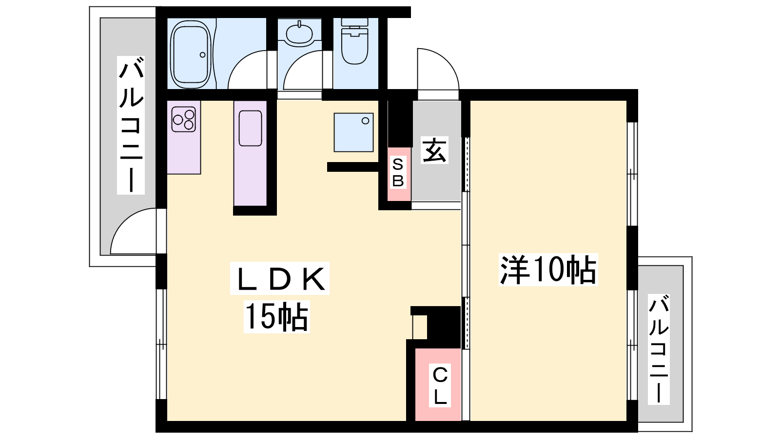 - LDK15帖、洋室10帖