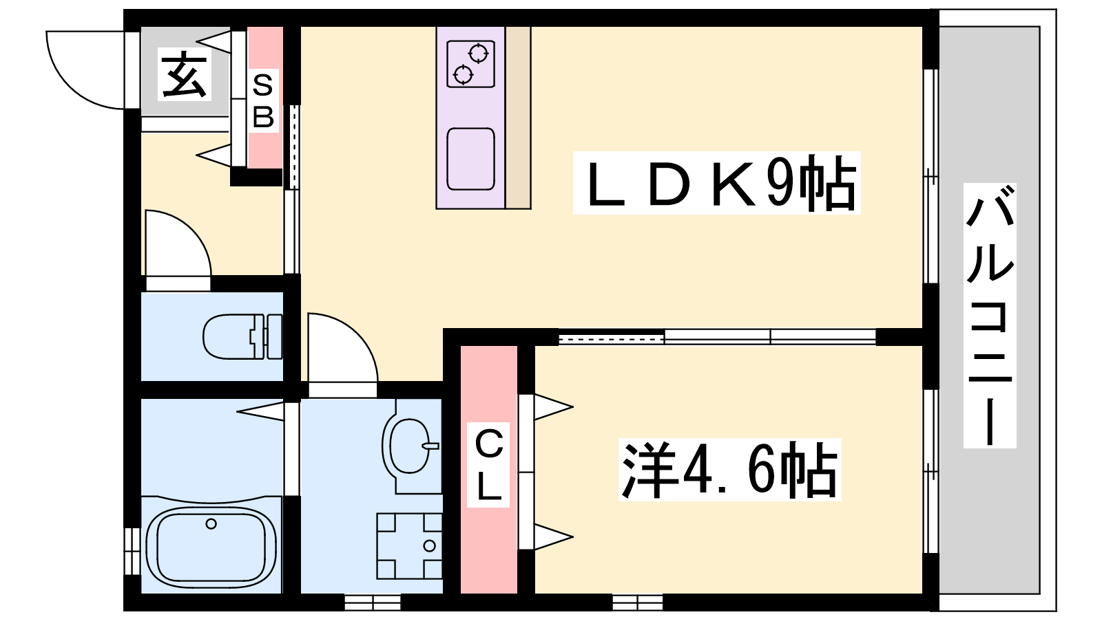- LDK9帖、洋室4.6帖