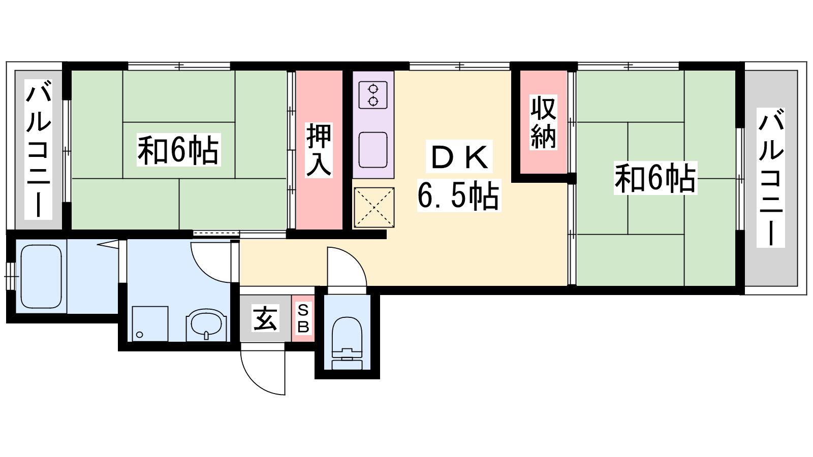 - DK6.5帖、和室6帖、和室6帖