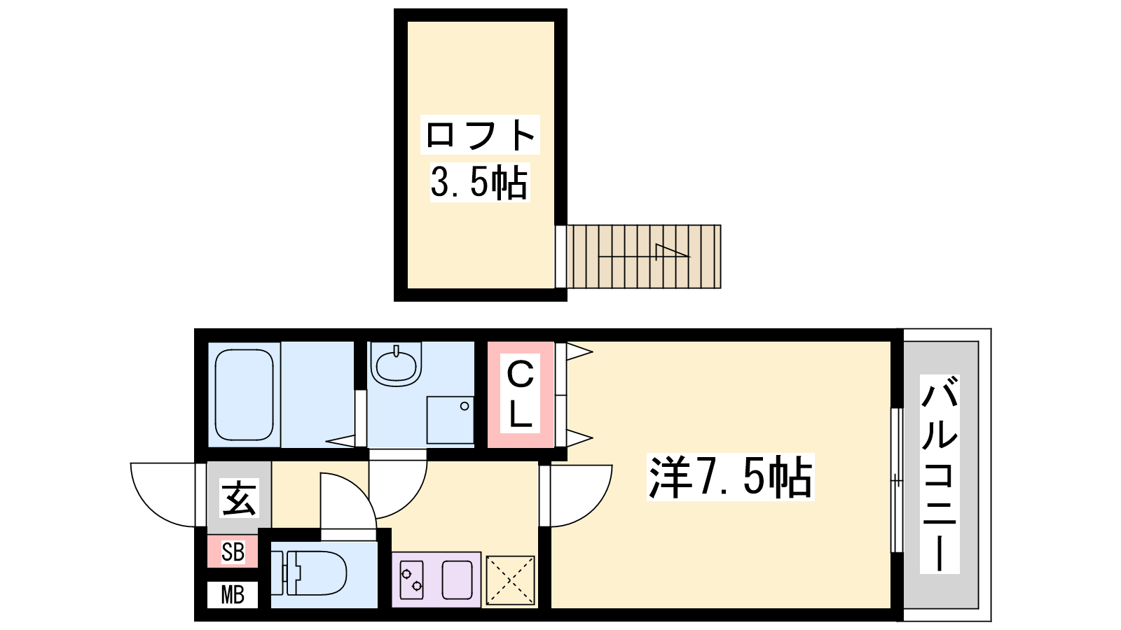- K2.5帖、洋室7.5帖