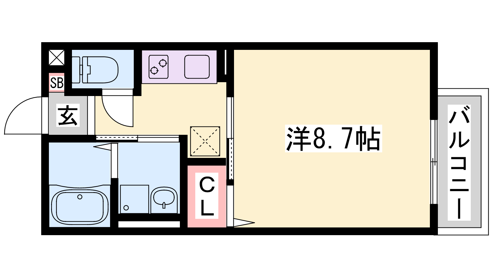 - K2.5帖、洋室8.7帖