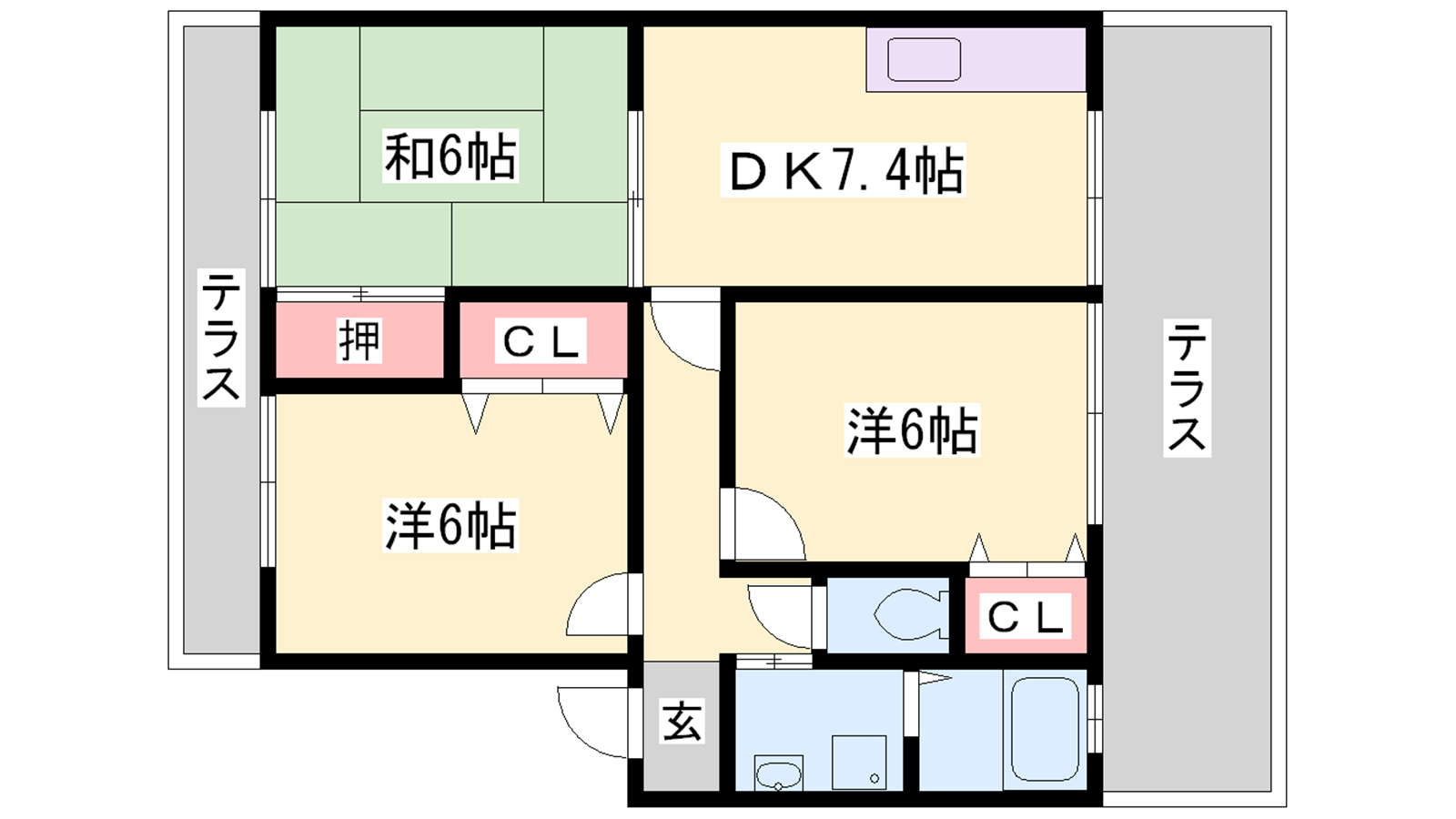 - DK7.4帖、洋室6帖、洋室6帖、和室6帖