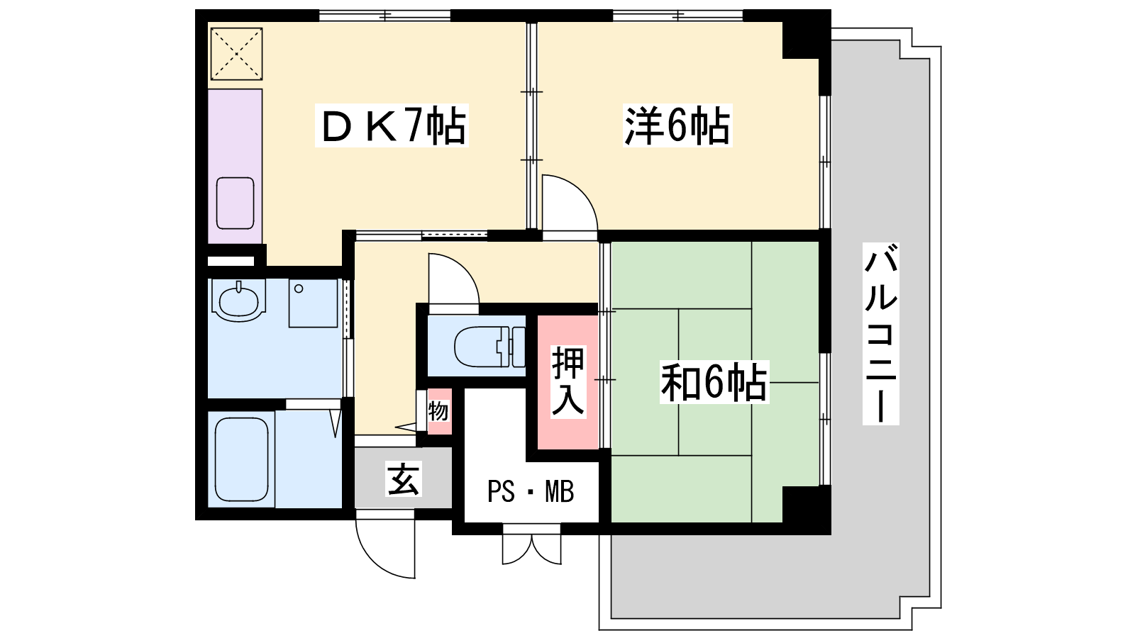 - DK7帖、洋室6帖、和室6帖