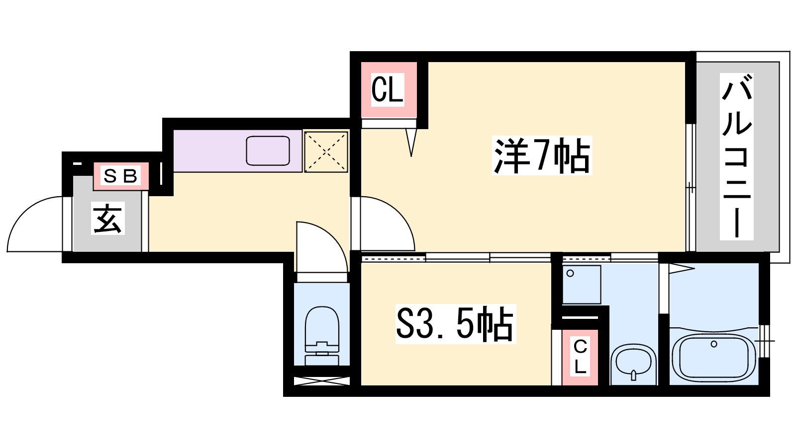 - K2.6帖、洋室7帖、S3.5帖