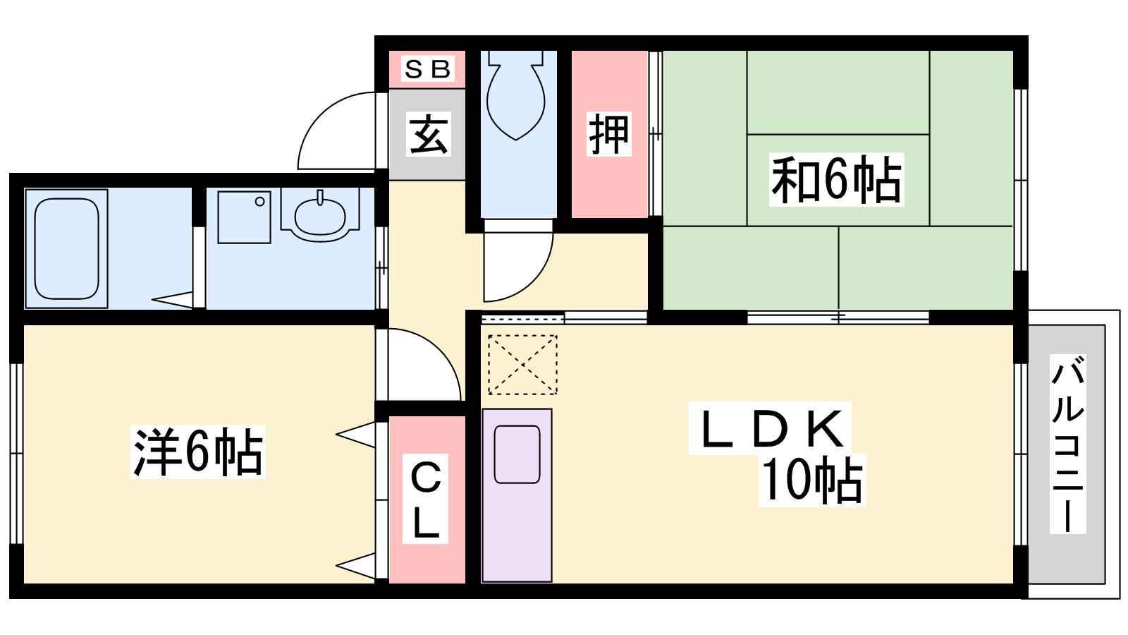 - LDK10帖、洋室6帖、和室6帖