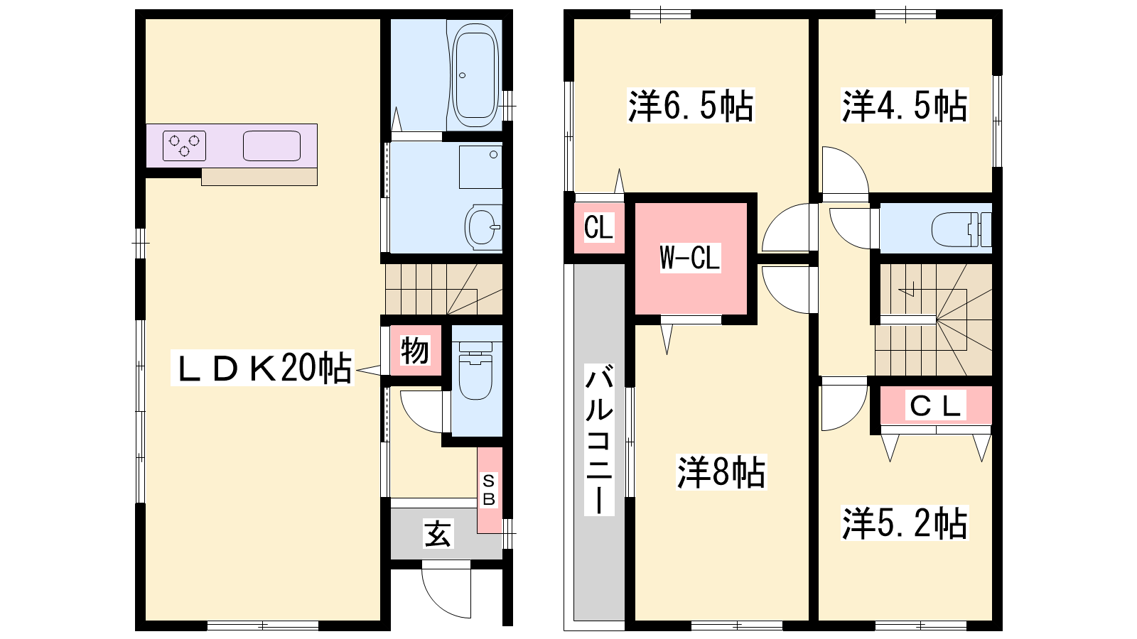 - LDK20帖、洋室8帖、洋室6.5帖、洋室5.2帖、洋室4.5帖