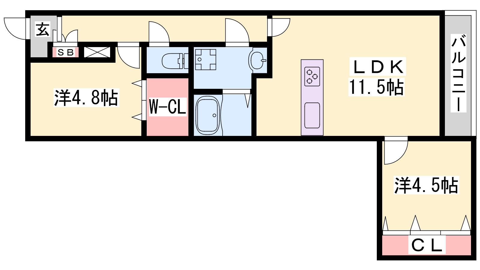 - LDK12帖、洋室4.5帖、洋室4.5帖