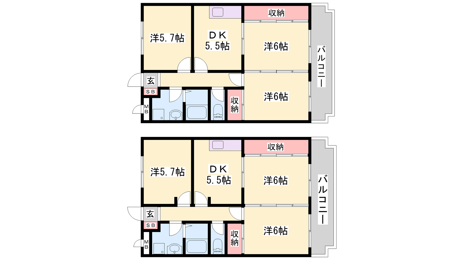 - DK5.5帖、洋室6帖、洋室6帖、洋室5.7帖