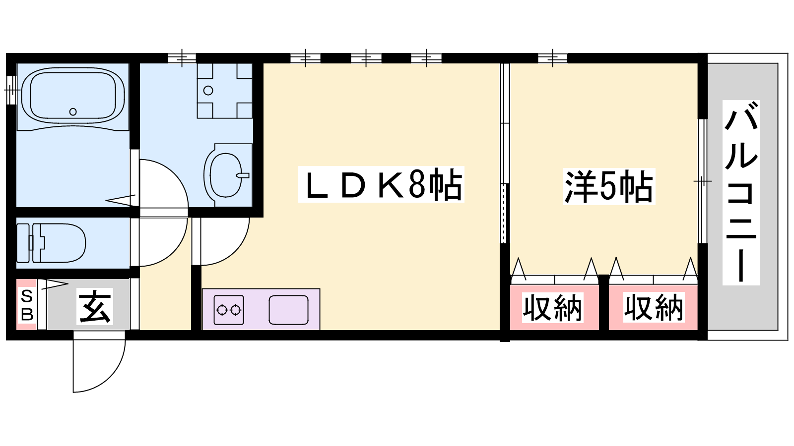 - LDK8帖、洋室5帖