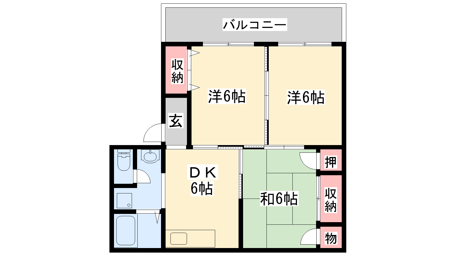 - DK6帖、和室6帖、和室6帖、洋室6帖