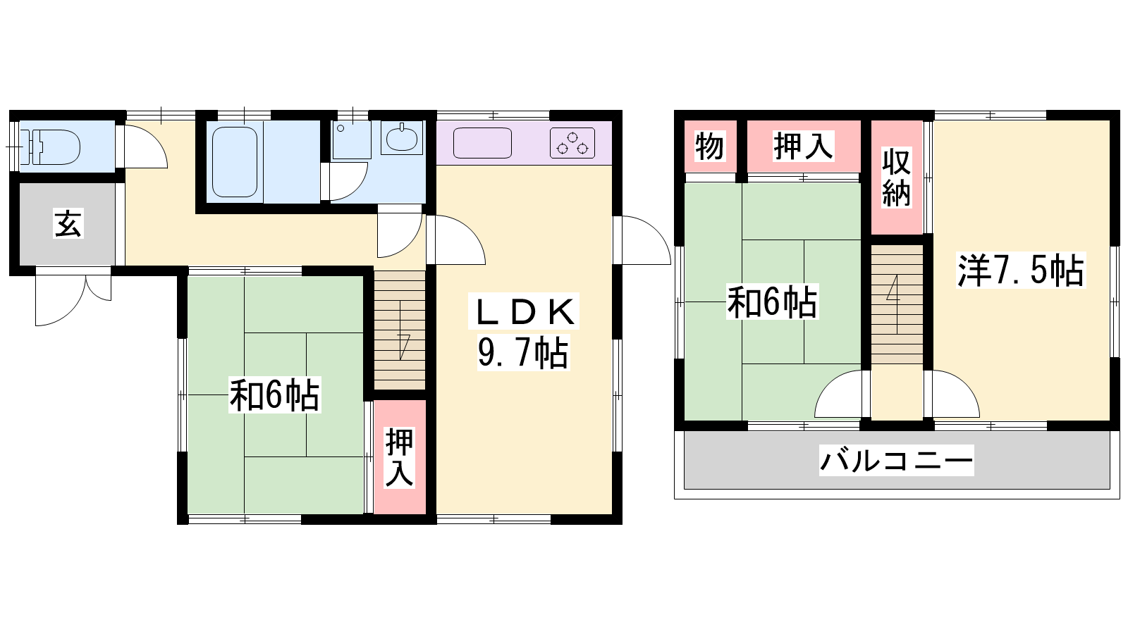 - LDK9.7帖、洋室7.5帖、和室6帖、和室6帖
