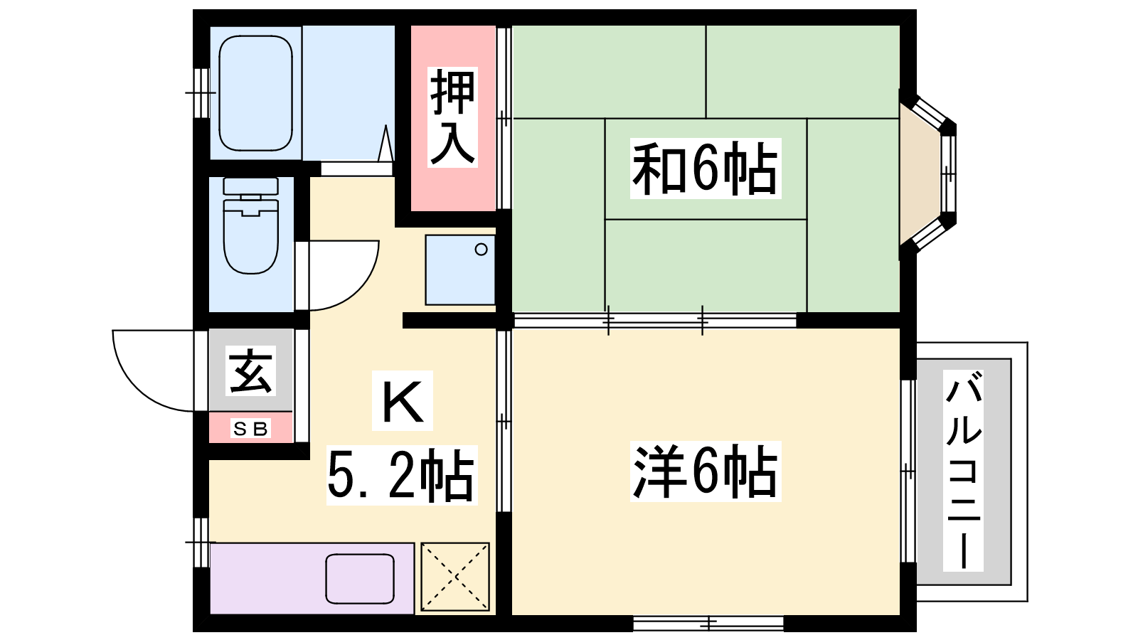 - DK5.2帖、洋室6帖、和室6帖