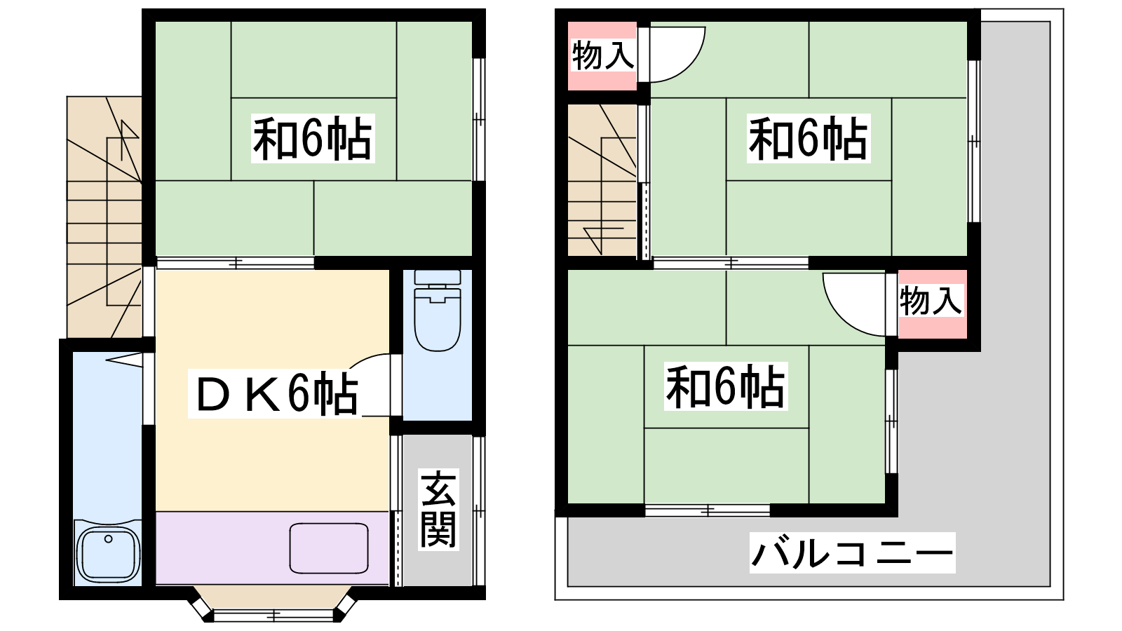 - DK6帖、和室6帖、和室6帖、和室6帖