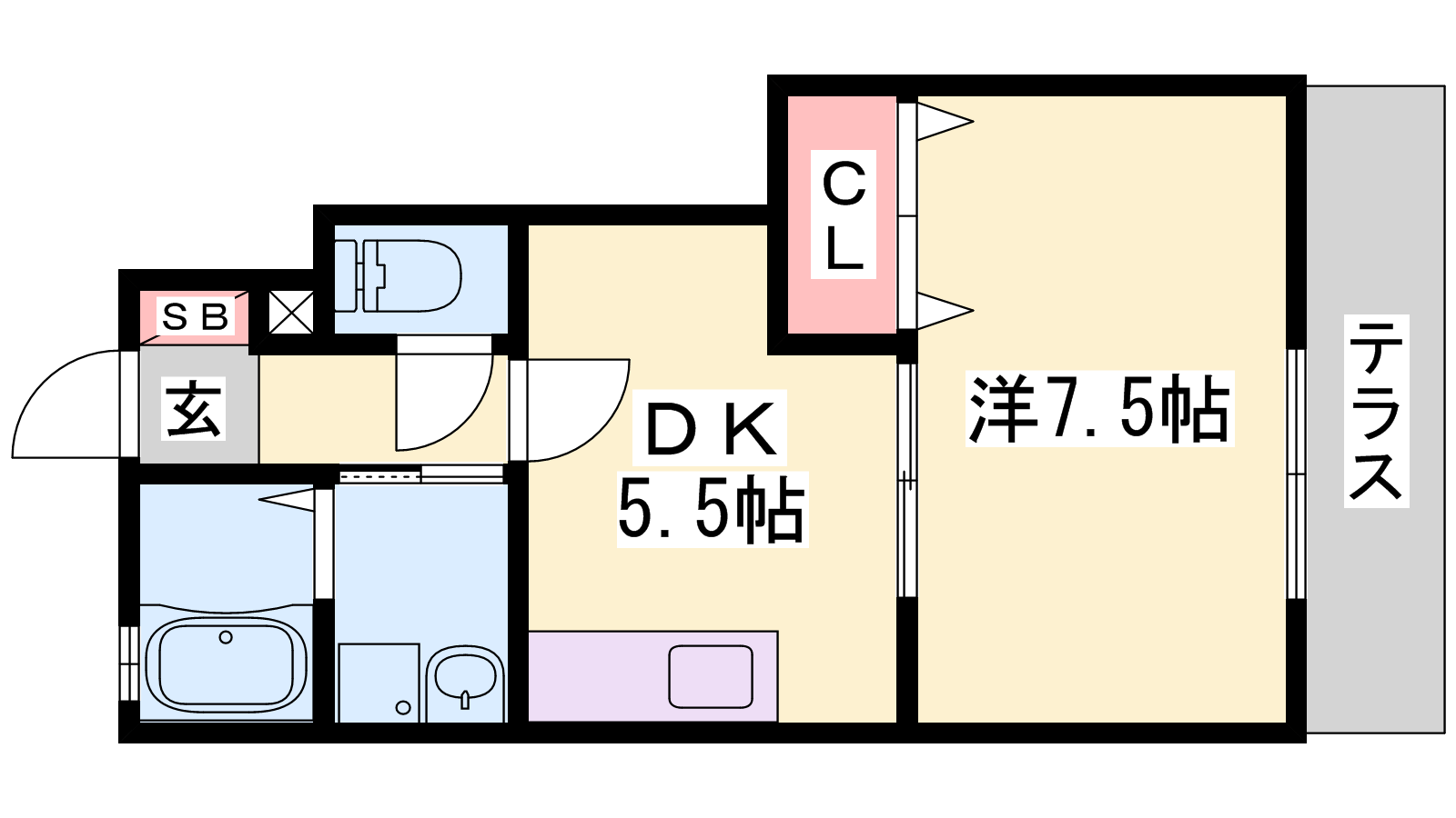 - DK5.5帖、洋室7.5帖