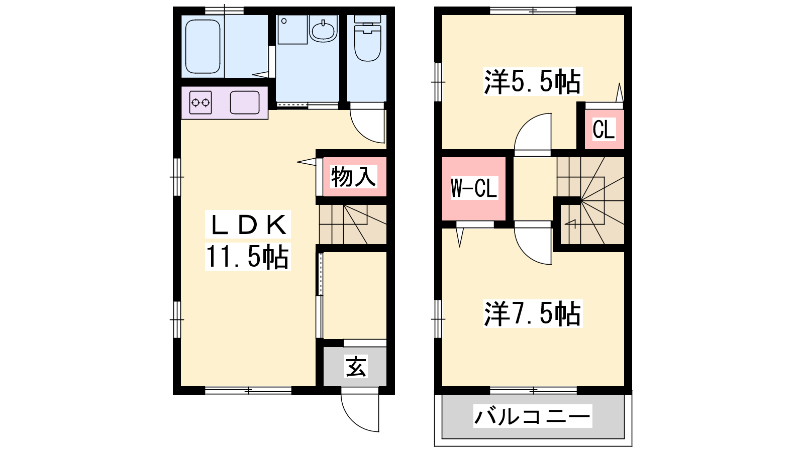 - LDK11.5帖、洋室6.5帖、洋室5.5帖