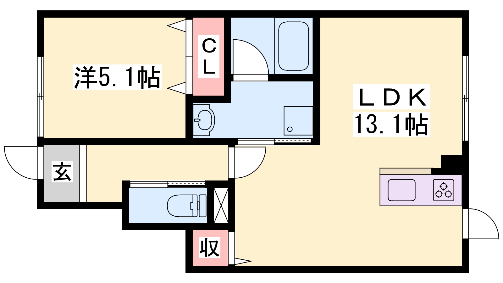 - LDK13.1帖、洋室5.1帖