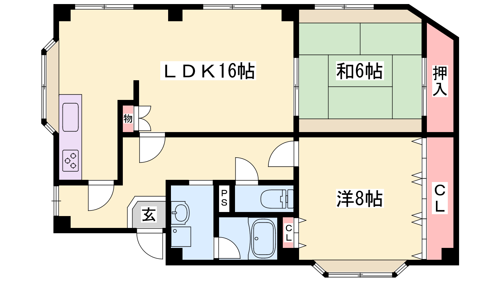 - LDK16帖、洋室8帖、和室6帖