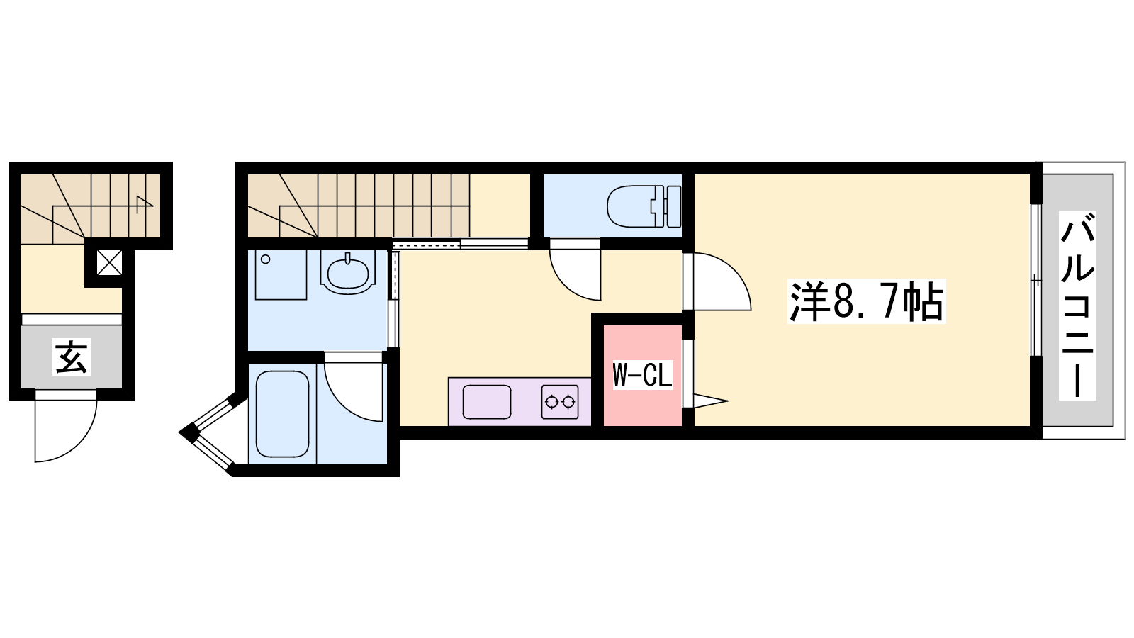 - K2帖、洋室8.7帖