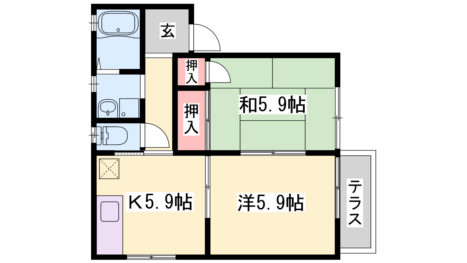 - K5.9帖、洋室5.9帖、和室5.9帖