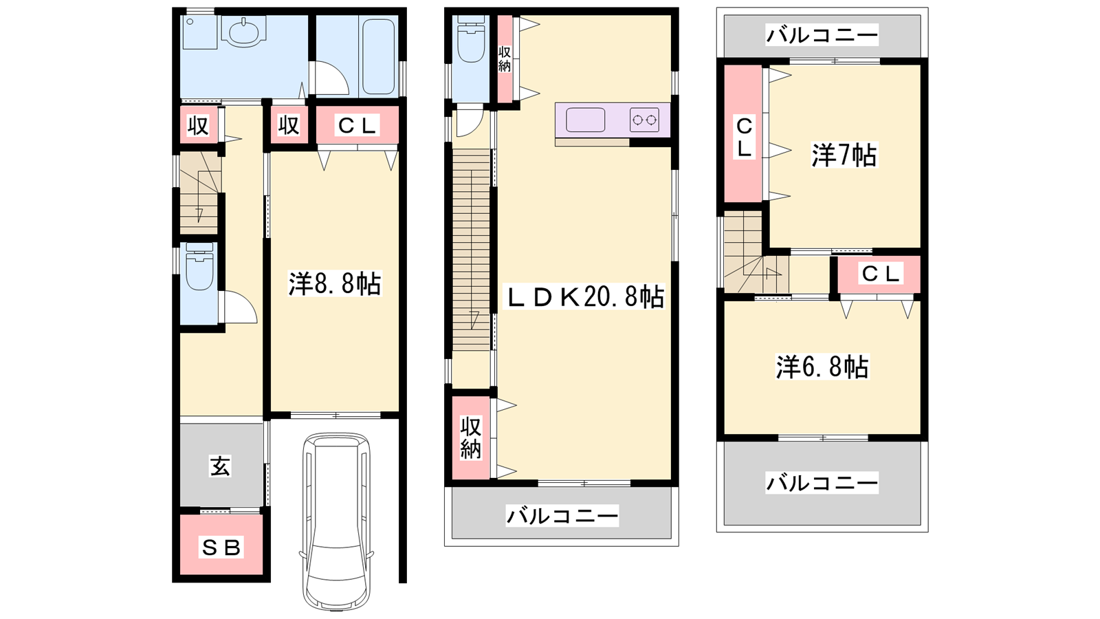 - LDK20.8帖、洋室8.8帖、洋室7帖、洋室6.8帖